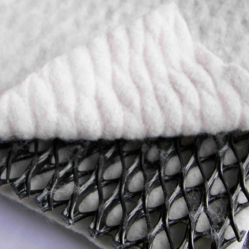 復合排水網(wǎng)是一種新型的排水土工材料。以高密度聚乙烯(HDPE)為原料,經(jīng)特殊的擠出成型工藝加工而成,具有三層特殊結(jié)構(gòu)。中間筋條剛性大,縱向排列,形成排水通道,上下交叉排列的筋條形成支撐防止土工布嵌入排水通道,即使在很高的荷載下也能保持很高的排水性能。雙面粘接滲水土工布復合使用,具有“反濾--排水--透氣--保護”綜合性能,是目前最理想的排水材料。